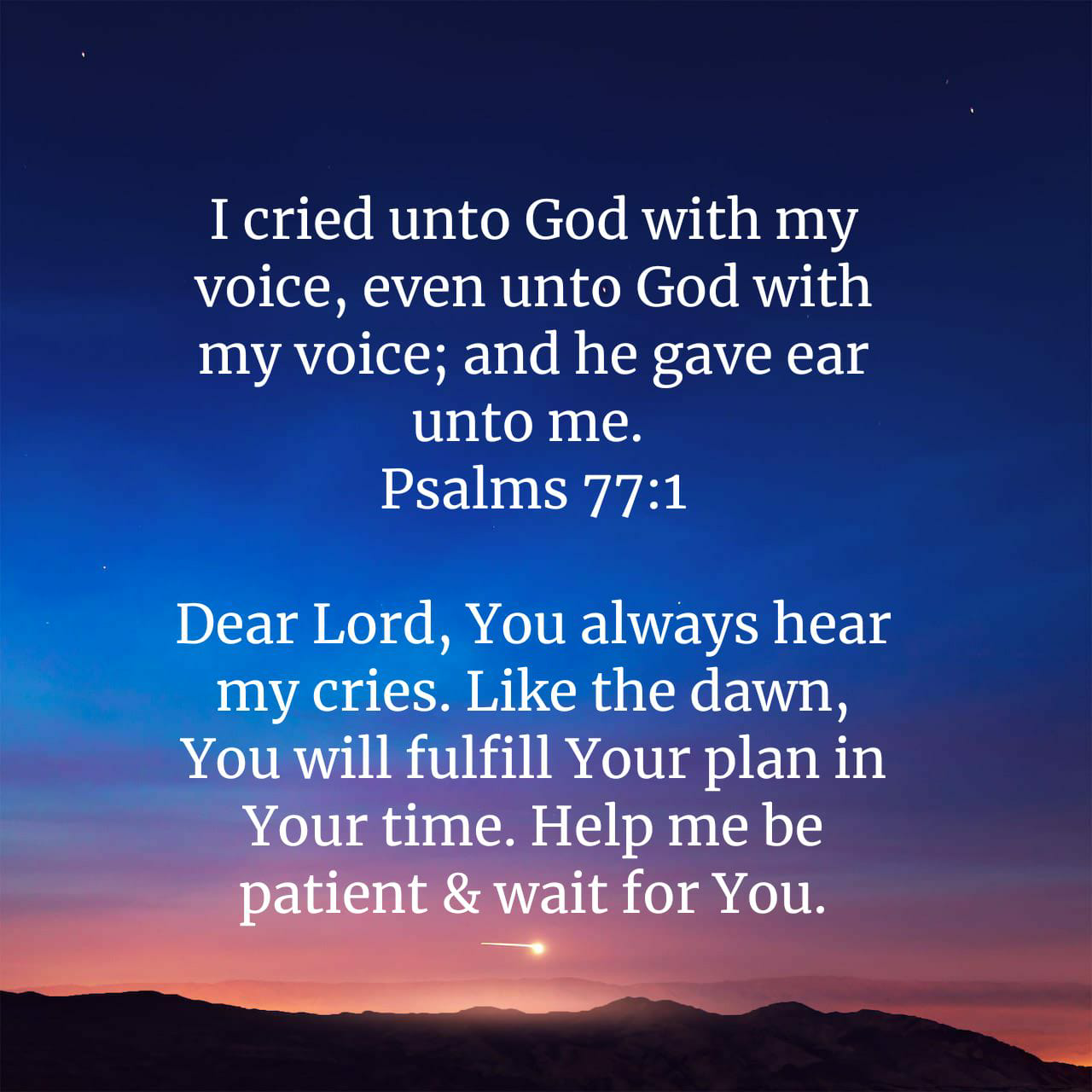 I cried unto God with my voice, even unto God with my voice; and he gave ear unto me. Psalms 77:1 KJV https://bible.com/bible/1/psa.77.1.KJV