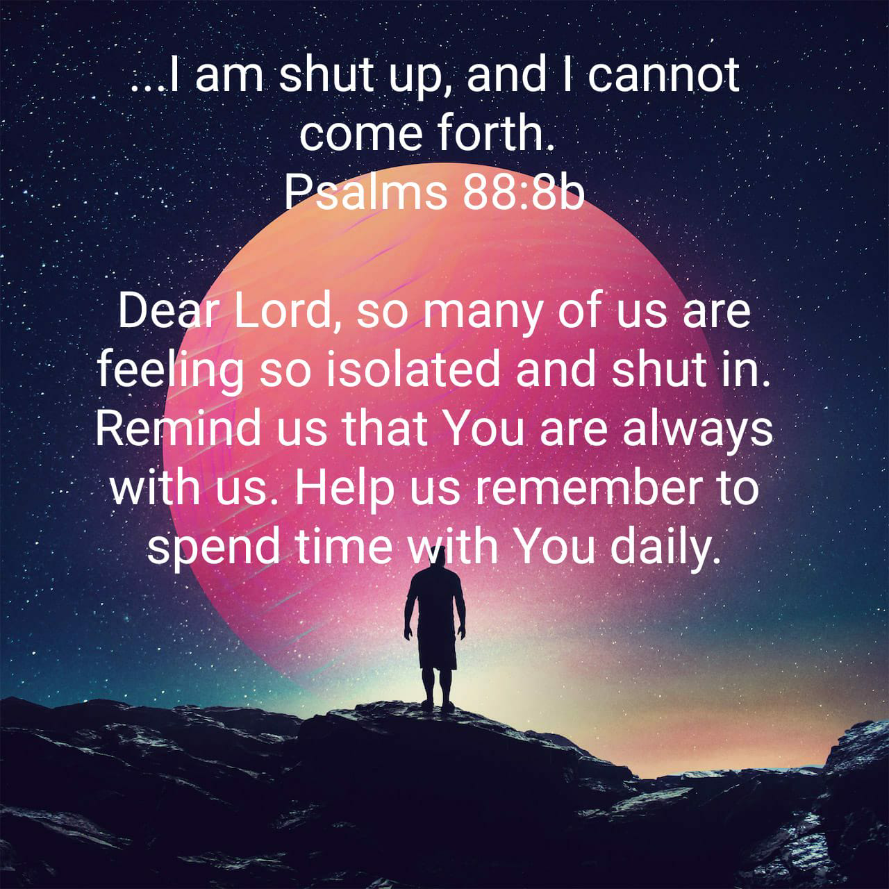 Thou hast put away mine acquaintance far from me; thou hast made me an abomination unto them: I am shut up, and I cannot come forth. Psalms 88:8 KJV https://bible.com/bible/1/psa.88.8.KJV