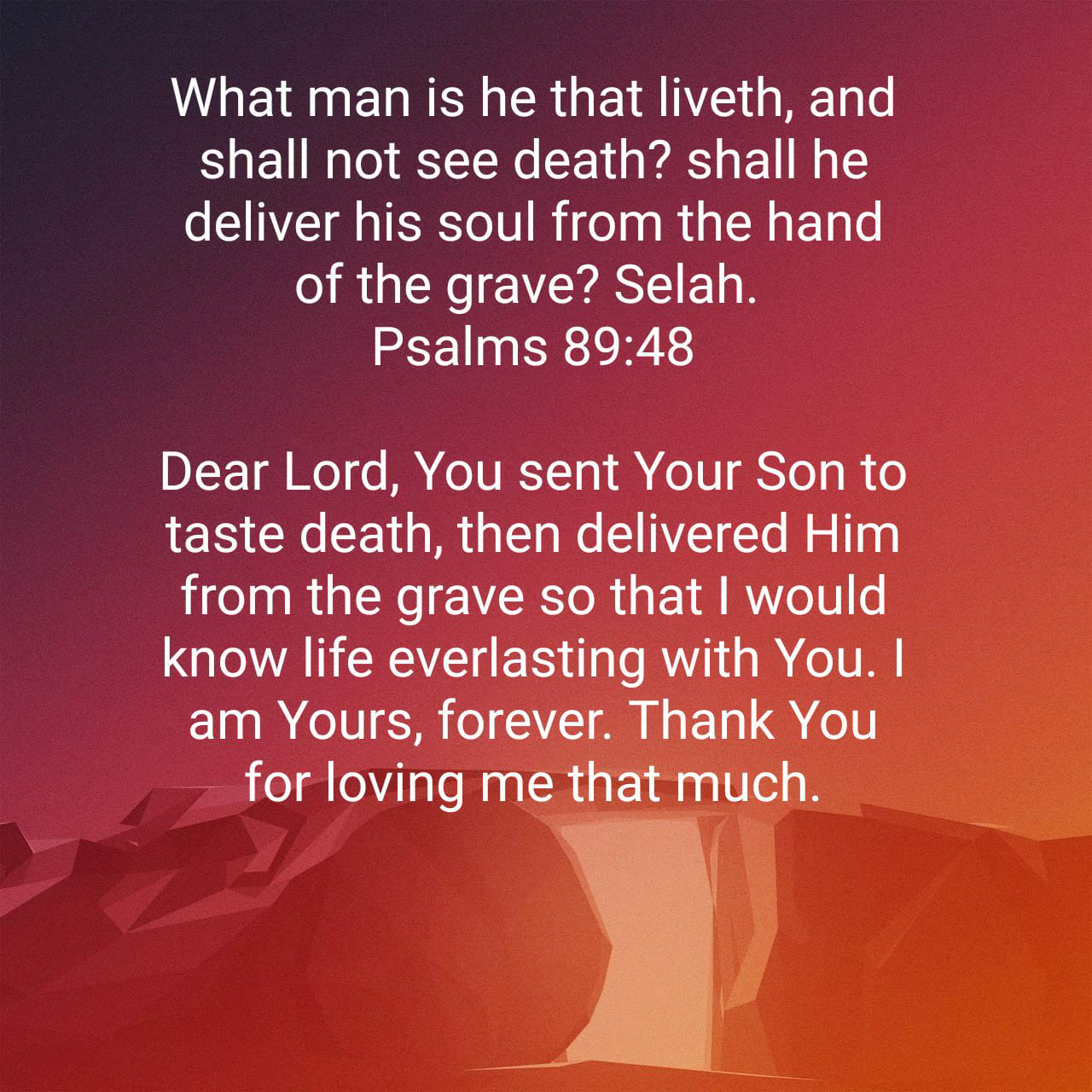 What man is he that liveth, and shall not see death? shall he deliver his soul from the hand of the grave? Selah. Psalms 89:48 KJV https://bible.com/bible/1/psa.89.48.KJV