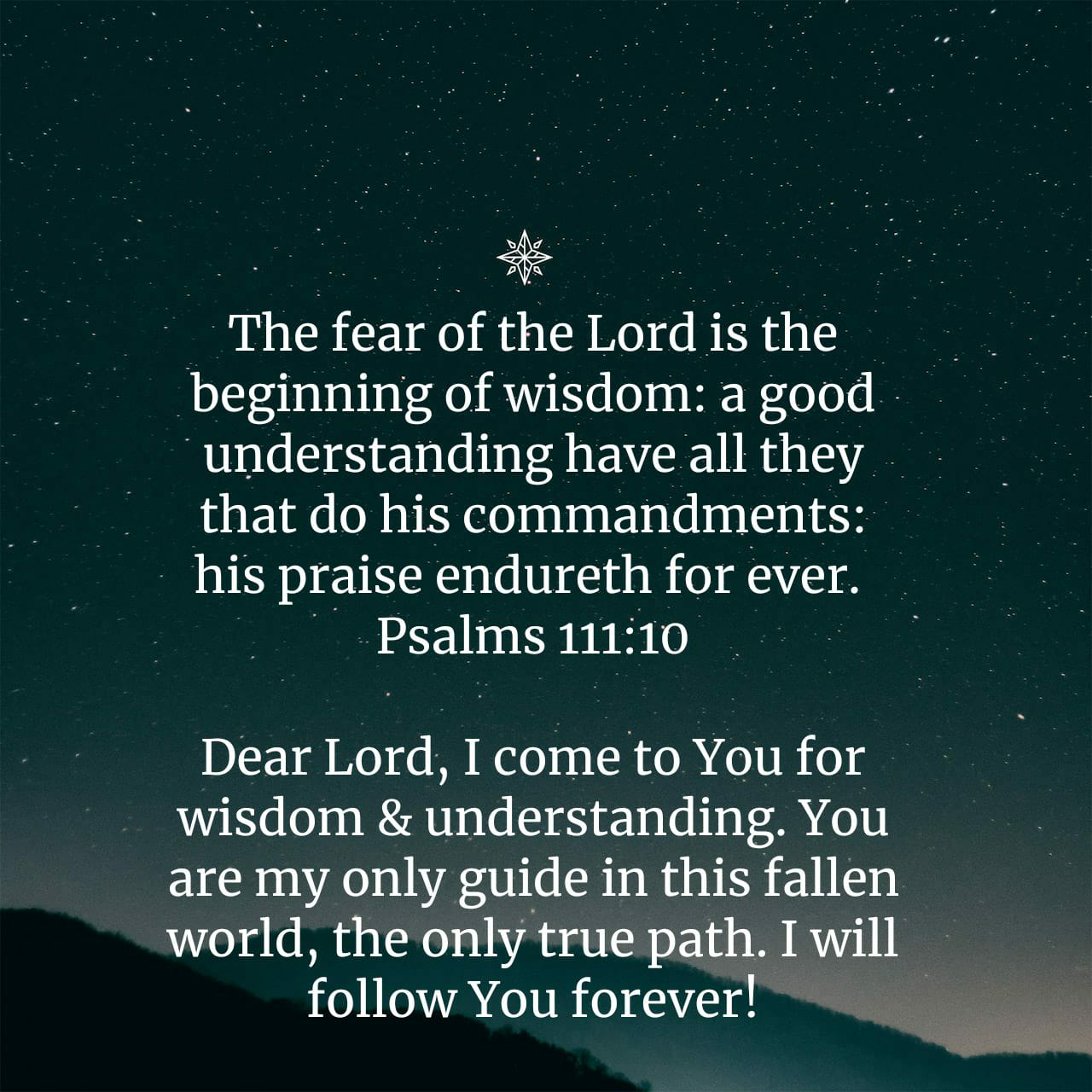 The fear of the Lord is the beginning of wisdom: a good understanding have all they that do his commandments: his praise endureth for ever. Psalms 111:10 KJV https://bible.com/bible/1/psa.111.10.KJV