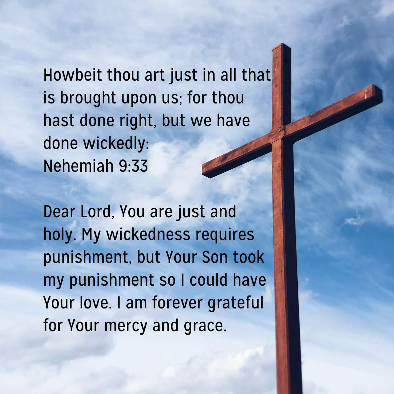 Howbeit thou art just in all that is brought upon us; for thou hast done right, but we have done wickedly: Nehemiah 9:33 KJV https://bible.com/bible/1/neh.9.33.KJV