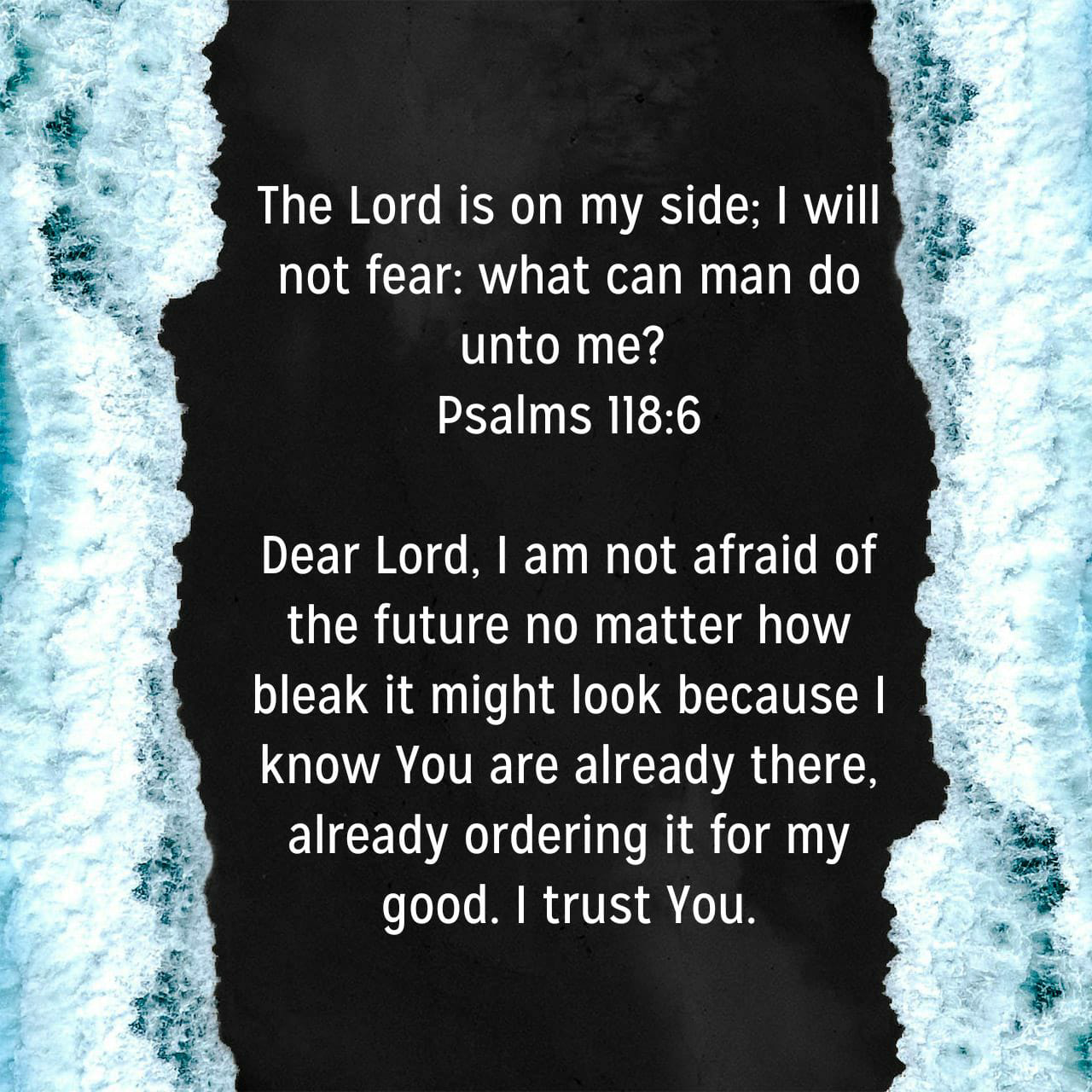 The Lord is on my side; I will not fear: what can man do unto me? Psalms 118:6 KJV https://bible.com/bible/1/psa.118.6.KJV