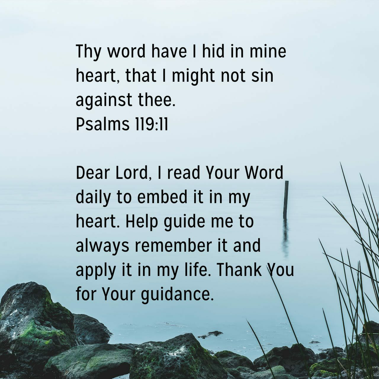 Thy word have I hid in mine heart, that I might not sin against thee. Psalms 119:11 KJV https://bible.com/bible/1/psa.119.11.KJV