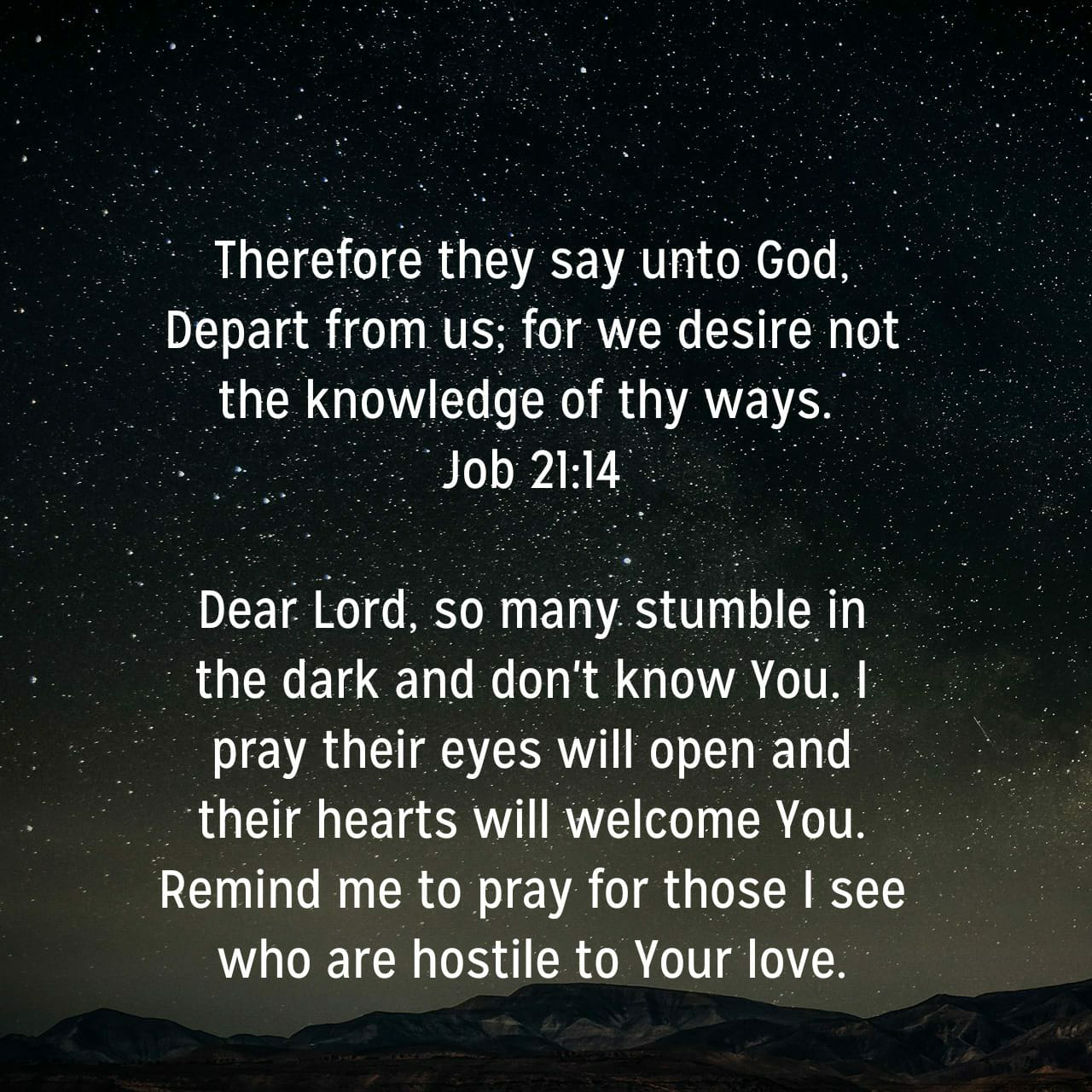 Therefore they say unto God, Depart from us; for we desire not the knowledge of thy ways. Job 21:14 KJV https://bible.com/bible/1/job.21.14.KJV