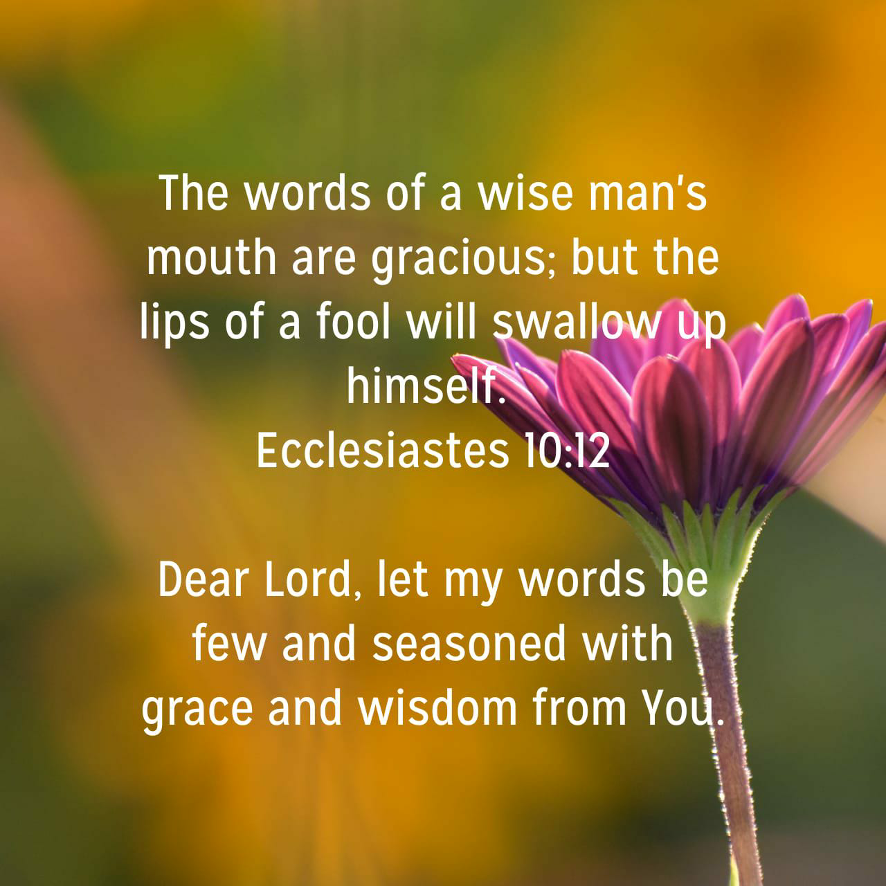 The words of a wise man’s mouth are gracious; but the lips of a fool will swallow up himself. Ecclesiastes 10:12 KJV https://bible.com/bible/1/ecc.10.12.KJV