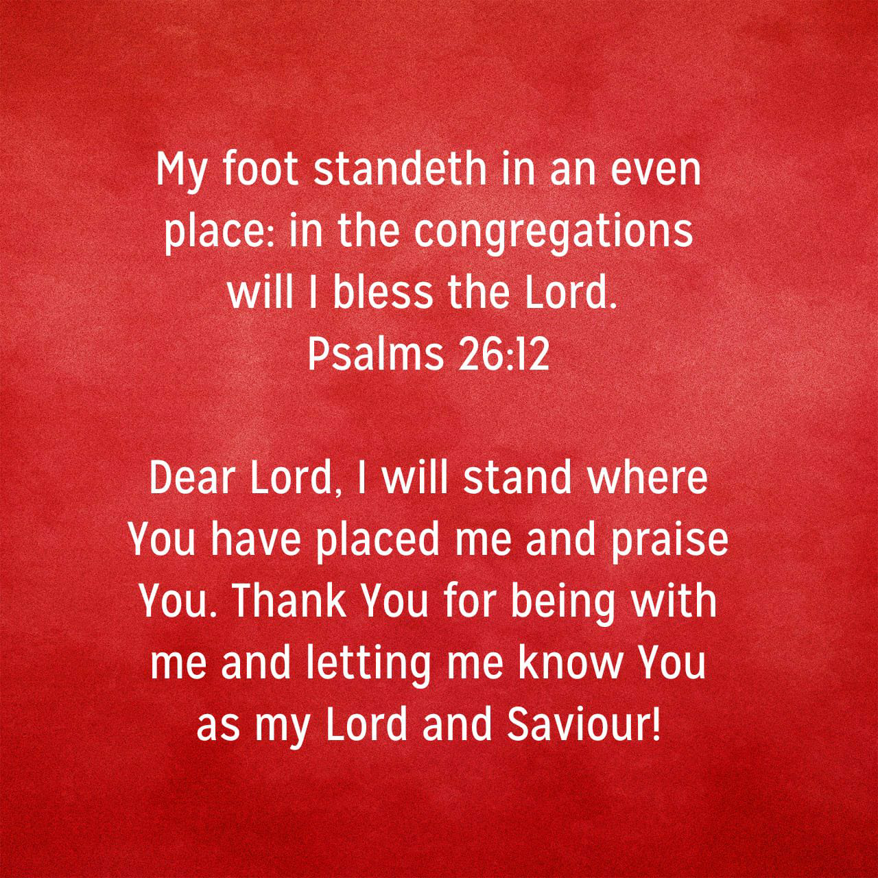 My foot standeth in an even place: in the congregations will I bless the Lord . Psalms 26:12 KJV https://bible.com/bible/1/psa.26.12.KJV