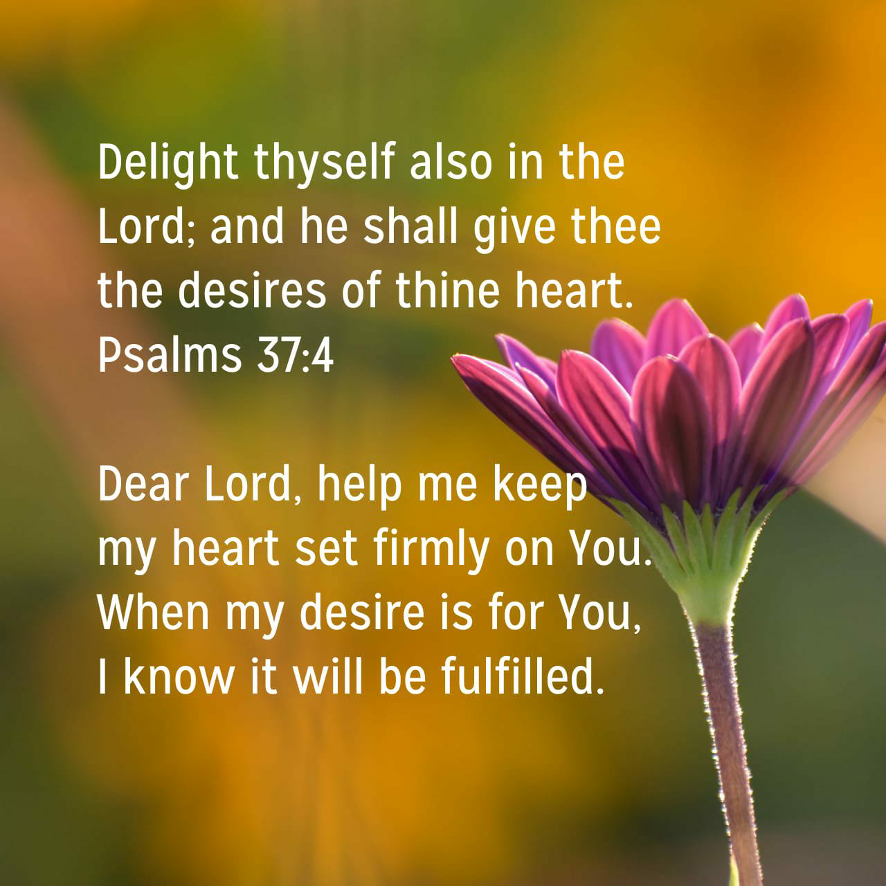 Delight thyself also in the Lord ; and he shall give thee the desires of thine heart. Psalms 37:4 KJV https://bible.com/bible/1/psa.37.4.KJV