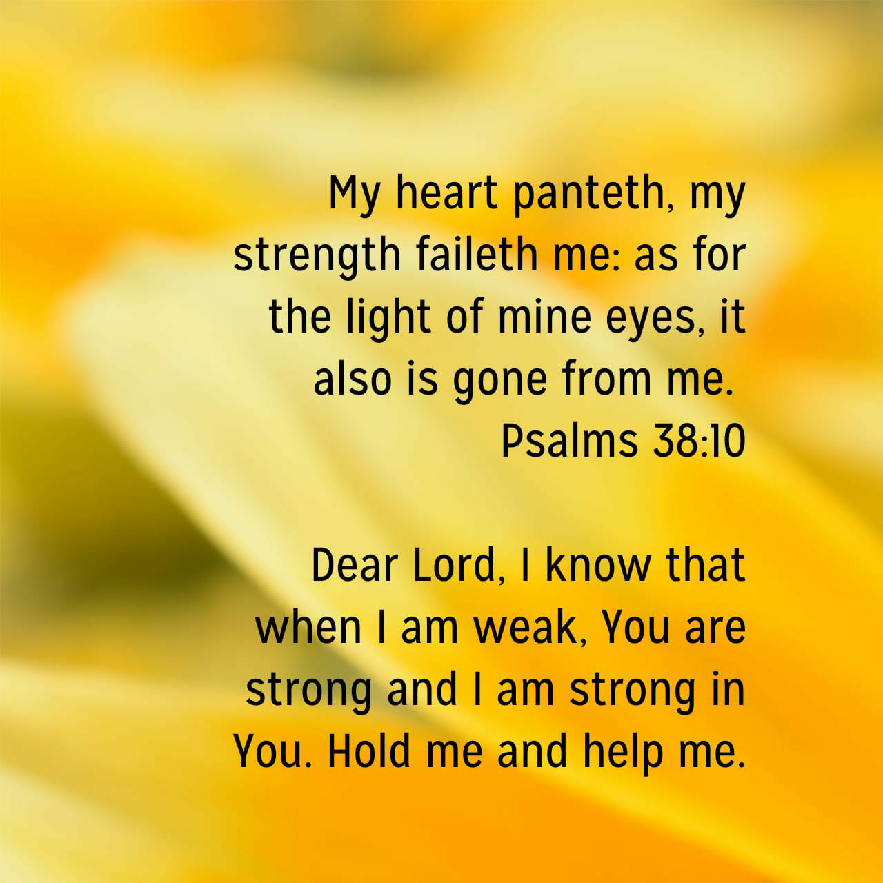 My heart panteth, my strength faileth me: as for the light of mine eyes, it also is gone from me. Psalms 38:10 KJV https://bible.com/bible/1/psa.38.10.KJV