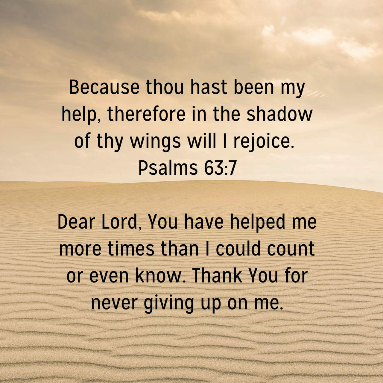 Because thou hast been my help, therefore in the shadow of thy wings will I rejoice. Psalms 63:7 KJV https://bible.com/bible/1/psa.63.7.KJV