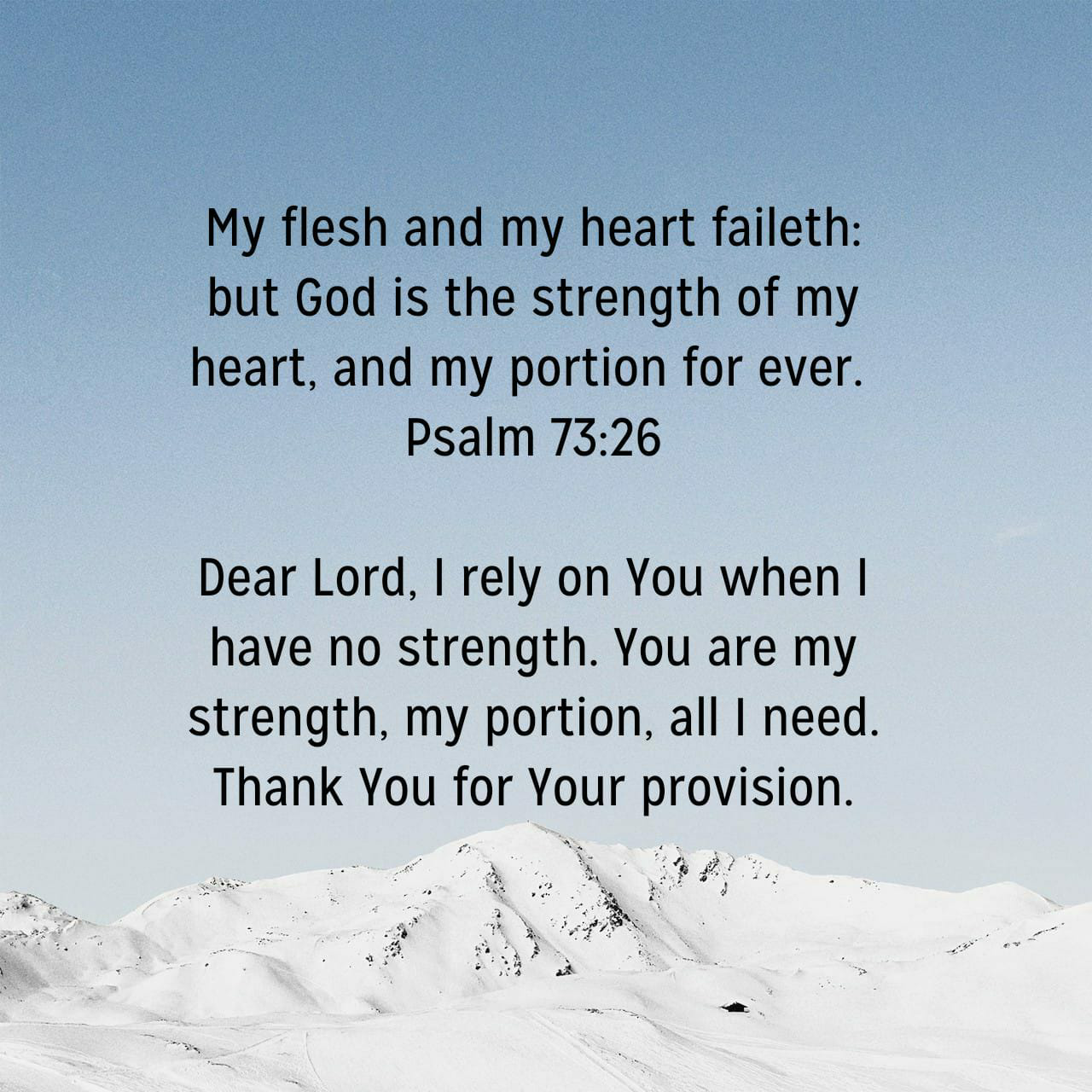 My flesh and my heart faileth: but God is the strength of my heart, and my portion for ever. Psalm 73:26 KJV https://bible.com/bible/1/psa.73.26.KJV