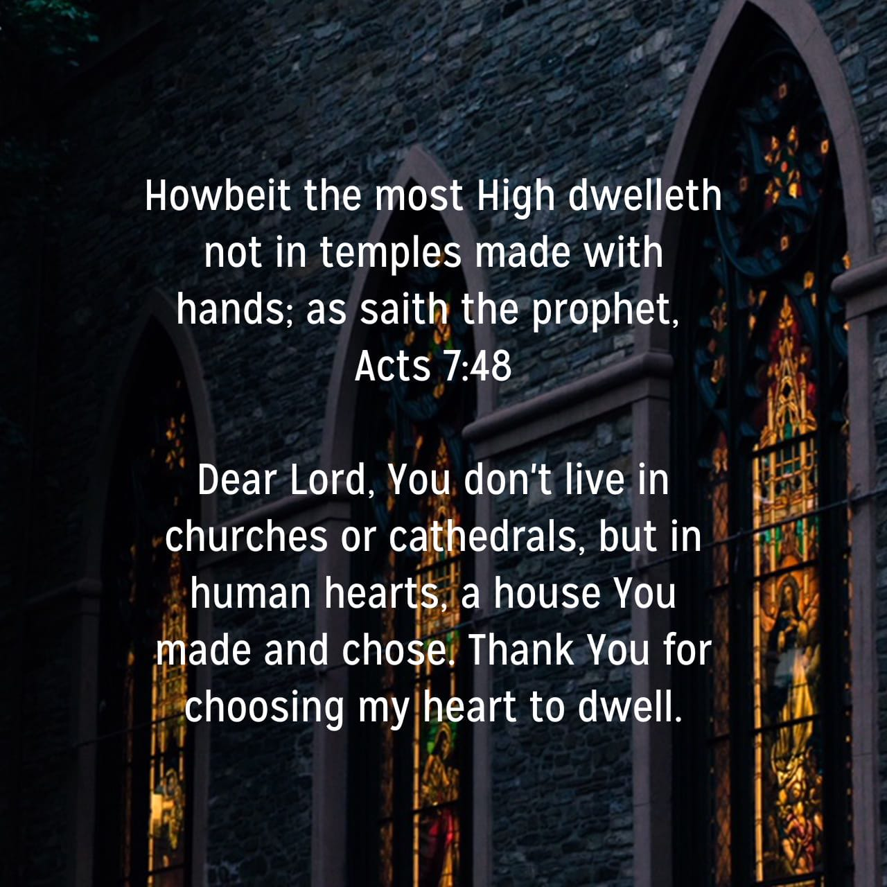 48 Howbeit the most High dwelleth not in temples made with hands; as saith the prophet, Acts 7:48 KJV https://bible.com/bible/1/act.7.48.KJV
