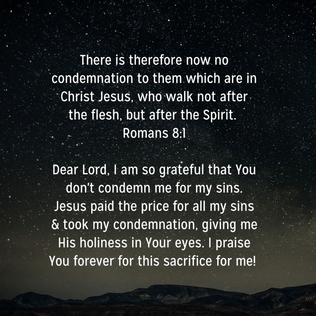 1 There is therefore now no condemnation to them which are in Christ Jesus, who walk not after the flesh, but after the Spirit. Romans 8:1 KJV https://bible.com/bible/1/rom.8.1.KJV