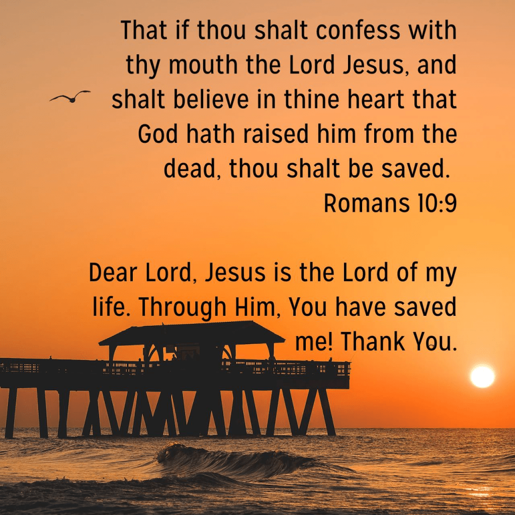 9 That if thou shalt confess with thy mouth the Lord Jesus, and shalt believe in thine heart that God hath raised him from the dead, thou shalt be saved. Romans 10:9 KJV https://bible.com/bible/1/rom.10.9.KJV
