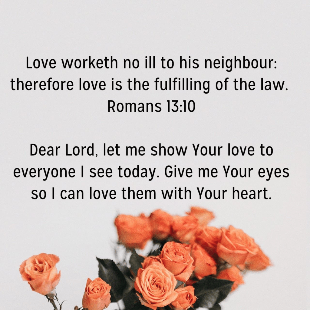 10 Love worketh no ill to his neighbour: therefore love is the fulfilling of the law. Romans 13:10 KJV https://bible.com/bible/1/rom.13.10.KJV