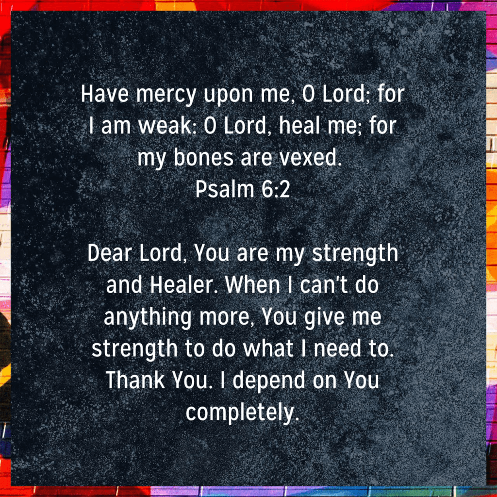 2 Have mercy upon me, O Lord; for I am weak: O Lord, heal me; for my bones are vexed. Psalm 6:2 KJV https://bible.com/bible/1/psa.6.2.KJV