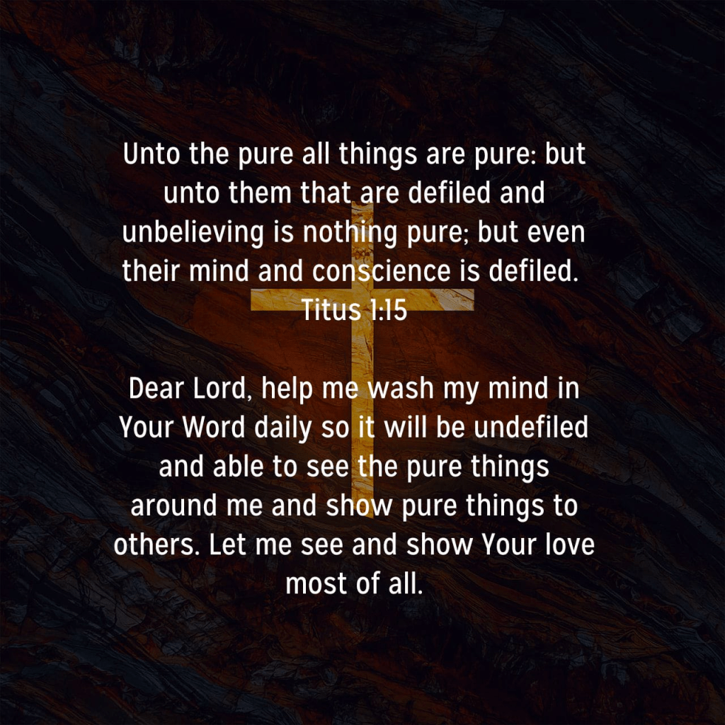15 Unto the pure all things are pure: but unto them that are defiled and unbelieving is nothing pure; but even their mind and conscience is defiled. Titus 1:15 KJV https://bible.com/bible/1/tit.1.15.KJV