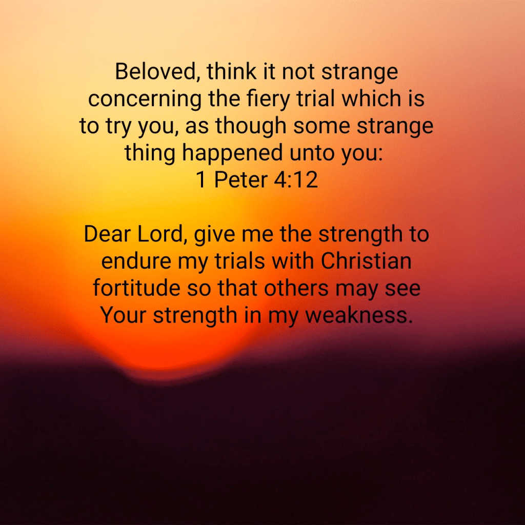 Beloved, think it not strange concerning the fiery trial which is to try you, as though some strange thing happened unto you: 1 Peter 4:12 KJV https://bible.com/bible/1/1pe.4.12.KJV