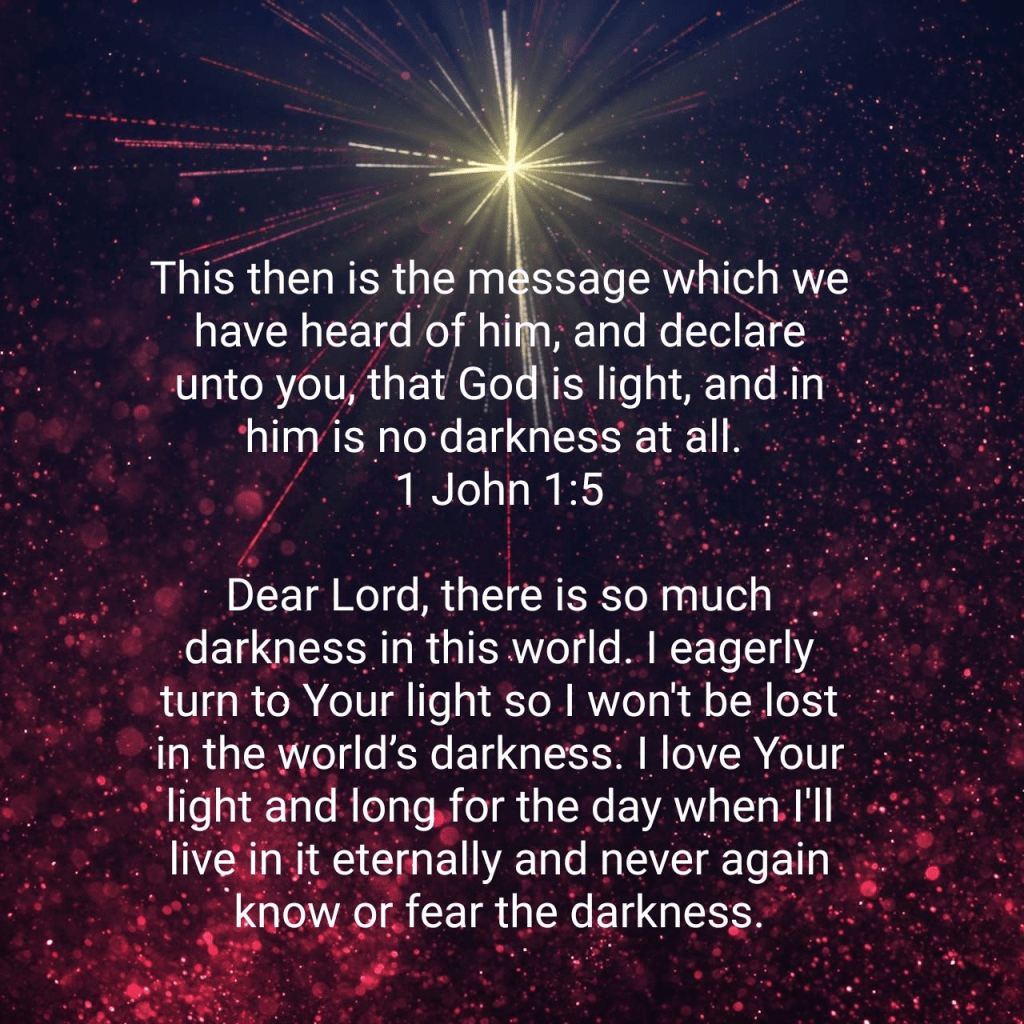 This then is the message which we have heard of him, and declare unto you, that God is light, and in him is no darkness at all. 1 John 1:5 KJV https://bible.com/bible/1/1jn.1.5.KJV
