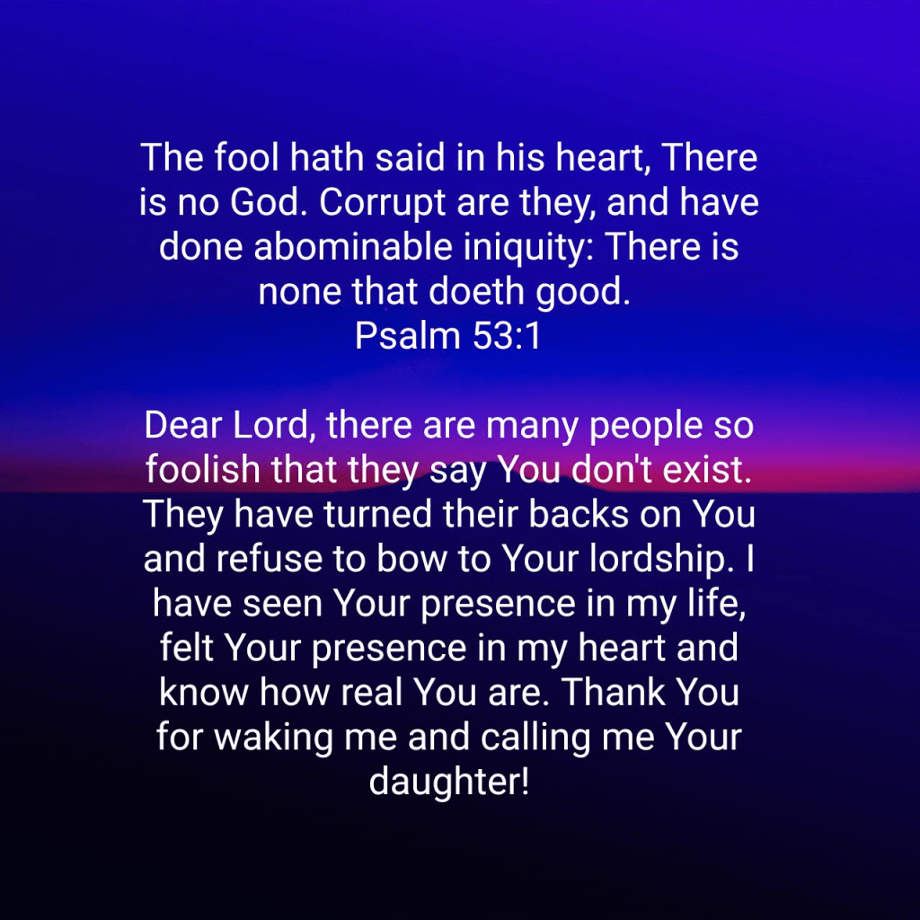 The fool hath said in his heart, There is no God. Corrupt are they, and have done abominable iniquity: There is none that doeth good. Psalm 53:1 KJV https://bible.com/bible/1/psa.53.1.KJV