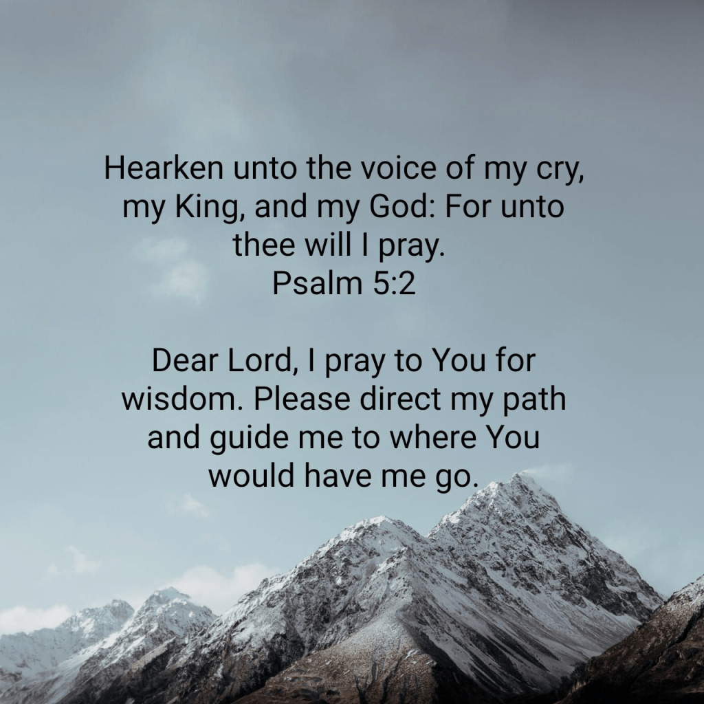 Hearken unto the voice of my cry, my King, and my God: For unto thee will I pray. Psalm 5:2 KJV https://bible.com/bible/1/psa.5.2.KJV