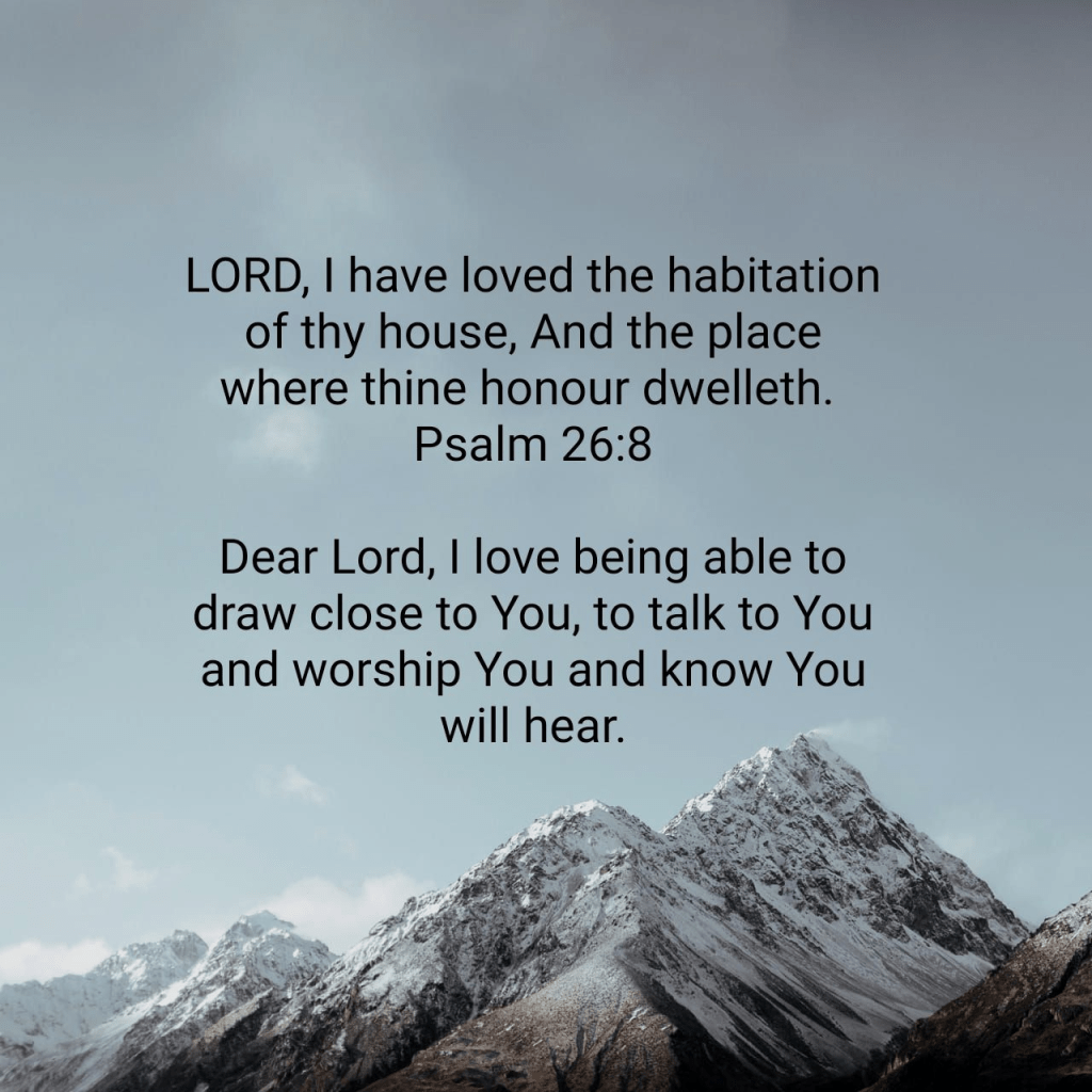 LORD, I have loved the habitation of thy house, And the place where thine honour dwelleth. Psalm 26:8 KJV https://bible.com/bible/1/psa.26.8.KJV