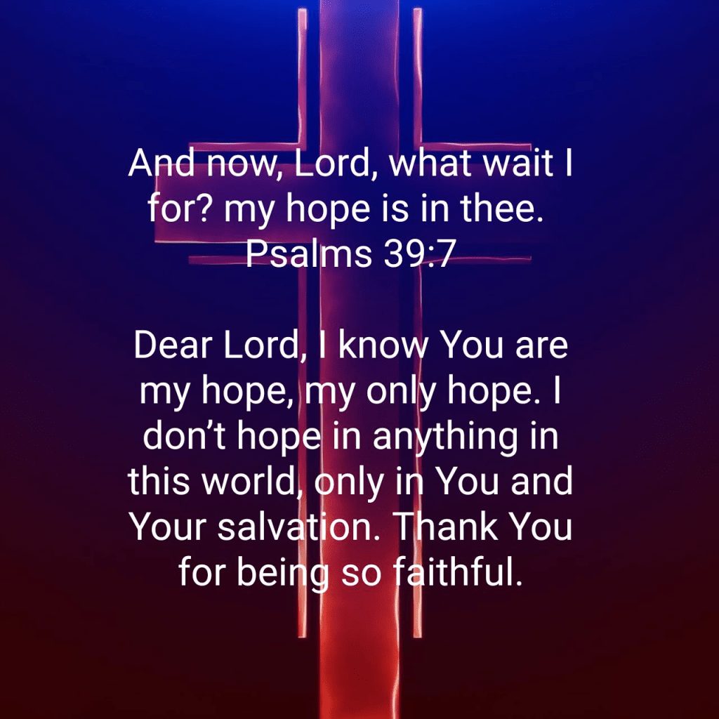 And now, Lord, what wait I for? My hope is in thee. Psalm 39:7 KJV https://bible.com/bible/1/psa.39.7.KJV