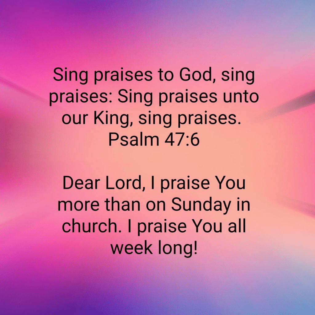 Sing praises to God, sing praises: Sing praises unto our King, sing praises. Psalm 47:6 KJV https://bible.com/bible/1/psa.47.6.KJV