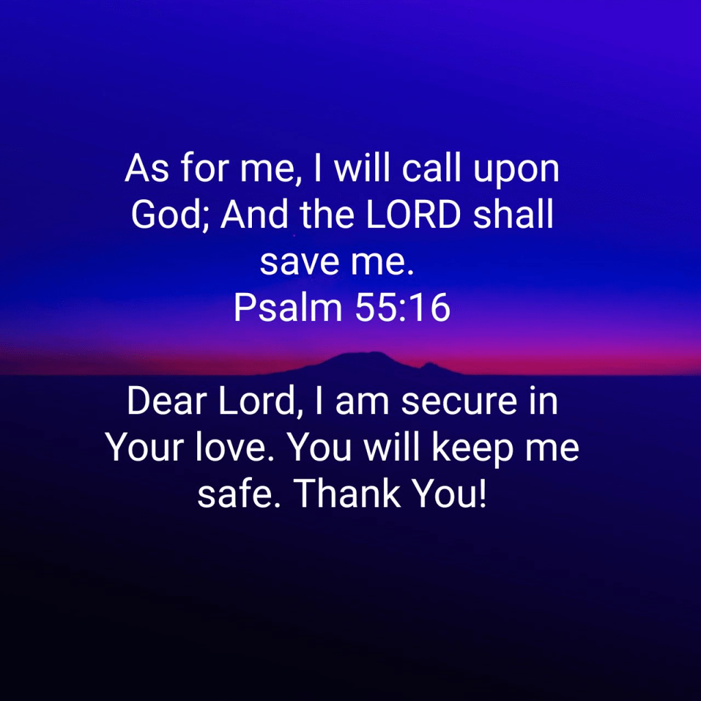 As for me, I will call upon God; And the LORD shall save me. Psalm 55:16 KJV https://bible.com/bible/1/psa.55.16.KJV