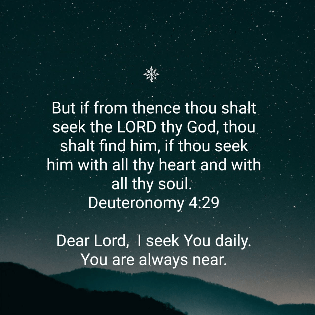 But if from thence thou shalt seek the LORD thy God, thou shalt find him, if thou seek him with all thy heart and with all thy soul. Deuteronomy 4:29 KJV https://bible.com/bible/1/deu.4.29.KJV