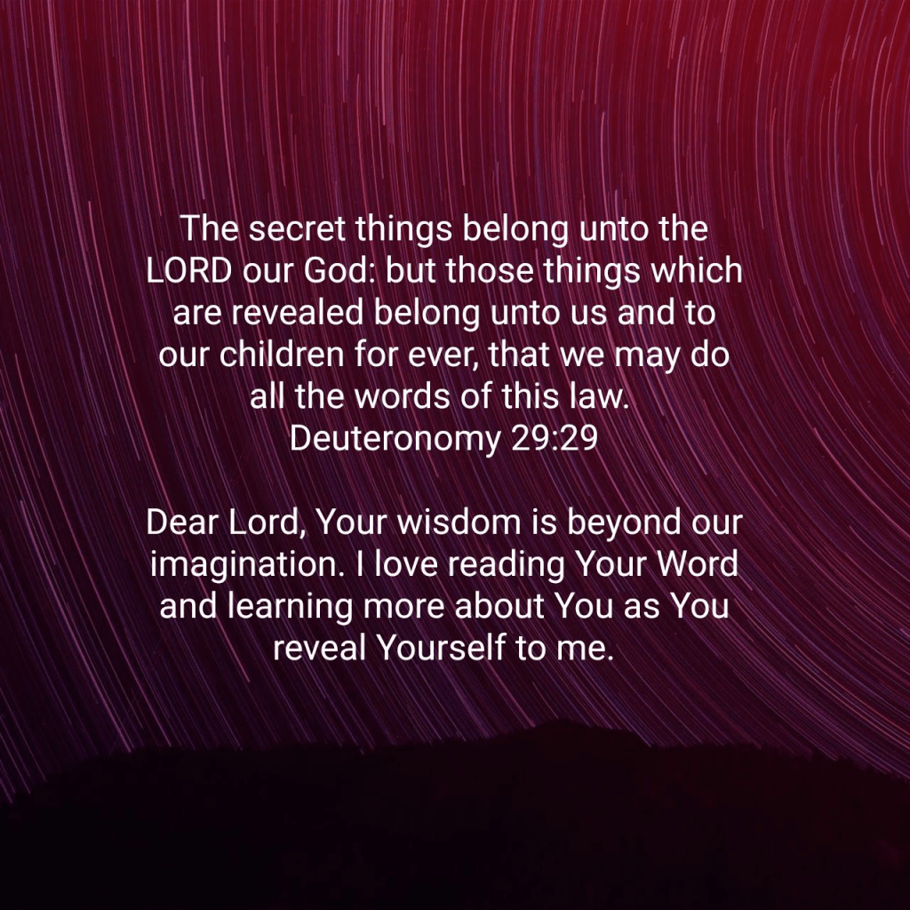The secret things belong unto the LORD our God: but those things which are revealed belong unto us and to our children for ever, that we may do all the words of this law. Deuteronomy 29:29 KJV https://bible.com/bible/1/deu.29.29.KJV