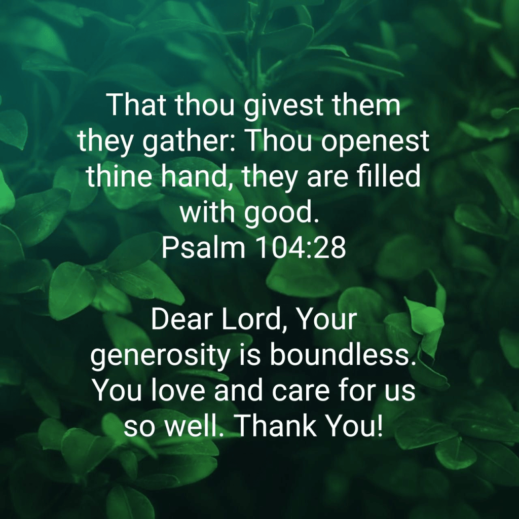 That thou givest them they gather: Thou openest thine hand, they are filled with good. Psalm 104:28 KJV https://bible.com/bible/1/psa.104.28.KJV