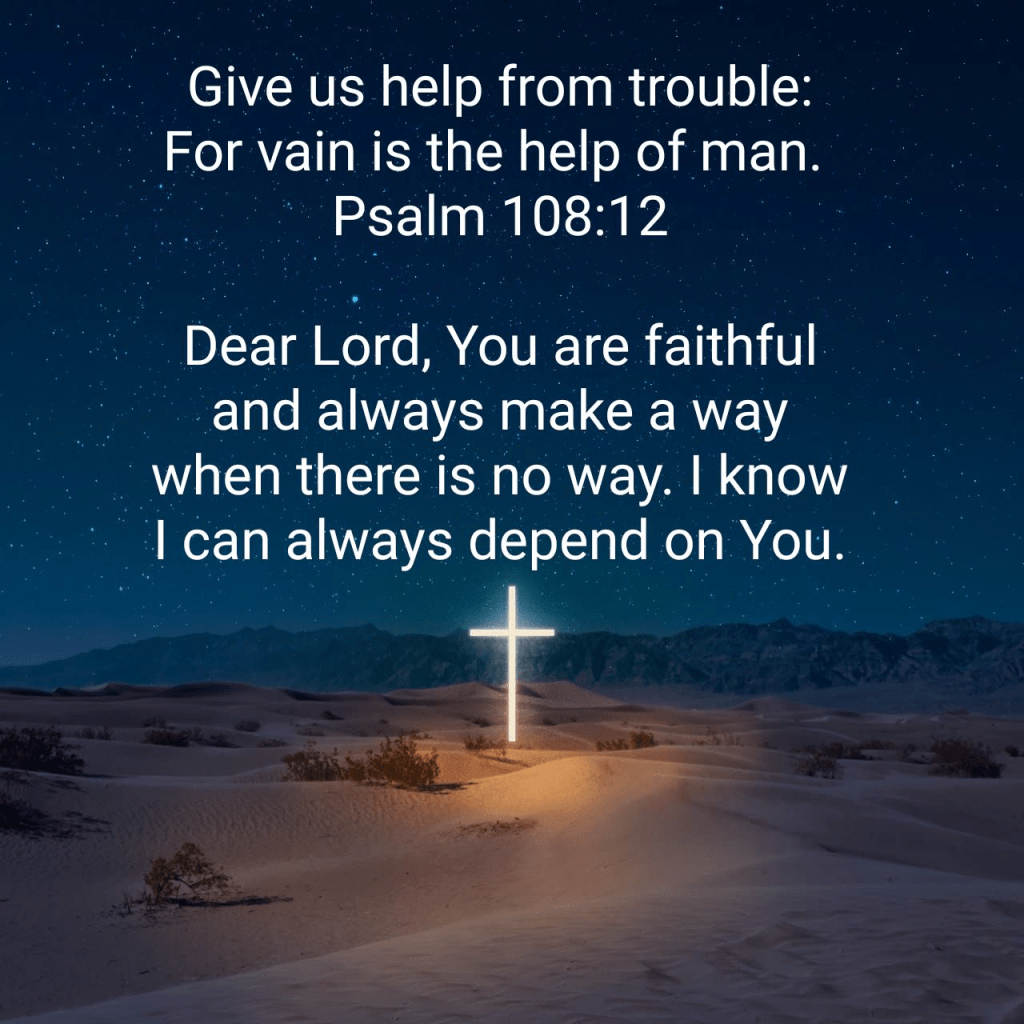 Give us help from trouble: For vain is the help of man. Psalm 108:12 KJV https://bible.com/bible/1/psa.108.12.KJV