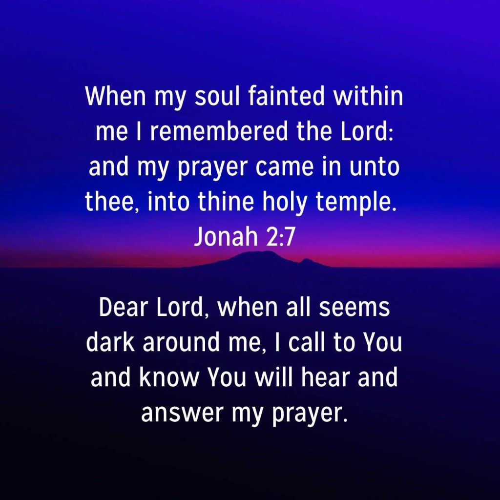 [7] When my soul fainted within me I remembered the LORD: And my prayer came in unto thee, into thine holy temple.