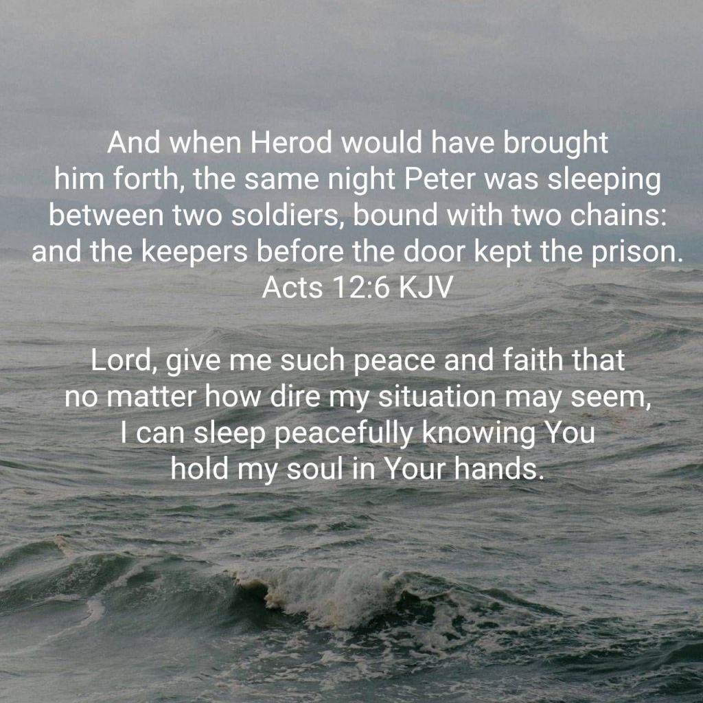 [6] And when Herod would have brought him forth, the same night Peter was sleeping between two soldiers, bound with two chains: and the keepers before the door kept the prison.