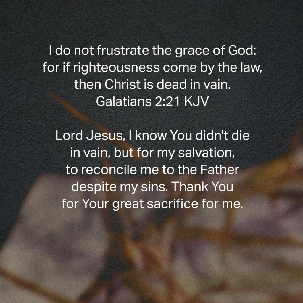 [21] I do not frustrate the grace of God: for if righteousness come by the law, then Christ is dead in vain.