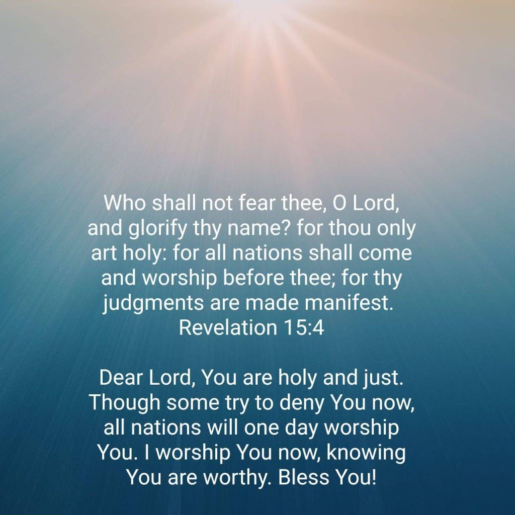 [4] Who shall not fear thee, O Lord, and glorify thy name? for thou only art holy: for all nations shall come and worship before thee; for thy judgments are made manifest.