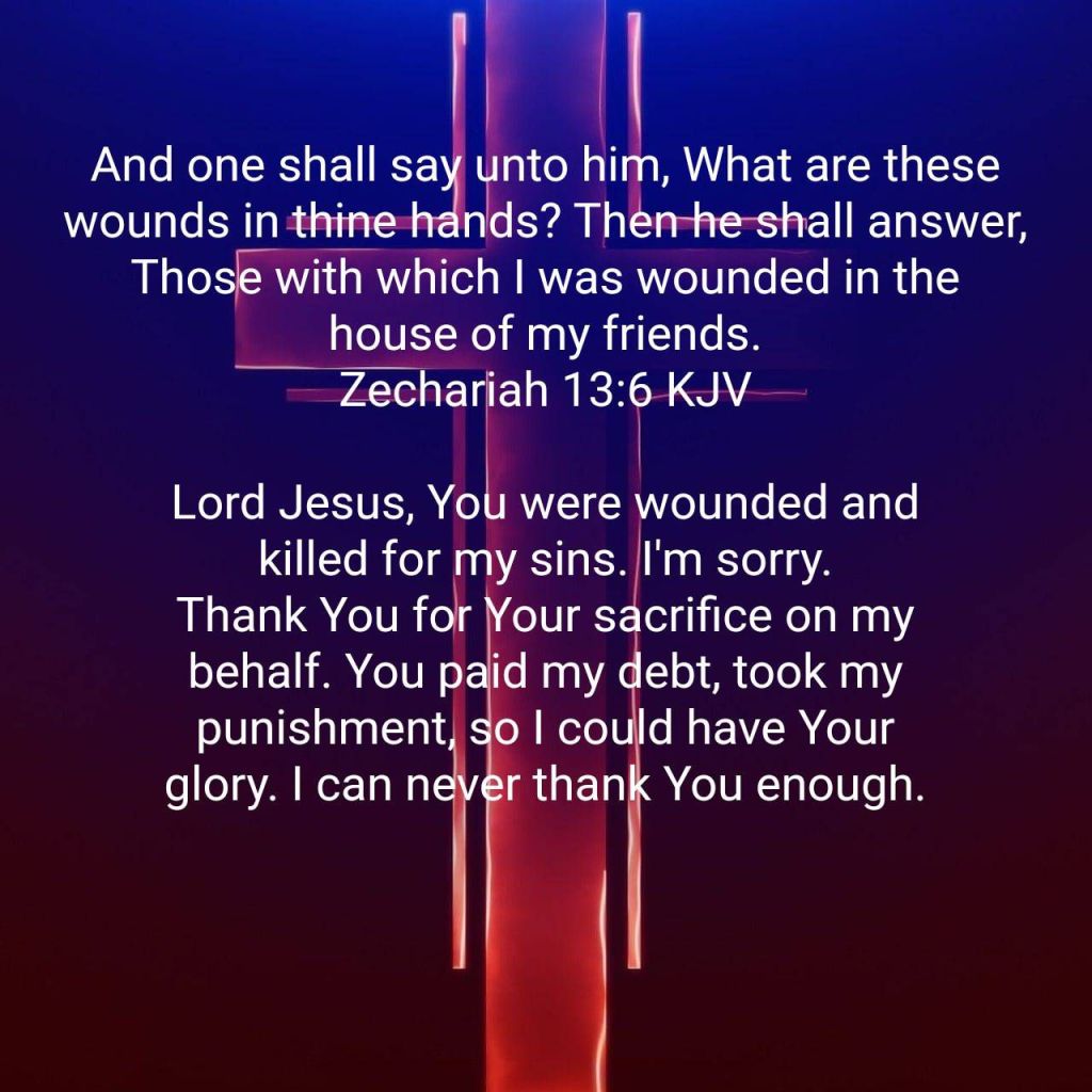 [6] And one shall say unto him, What are these wounds in thine hands? Then he shall answer, Those with which I was wounded in the house of my friends.
