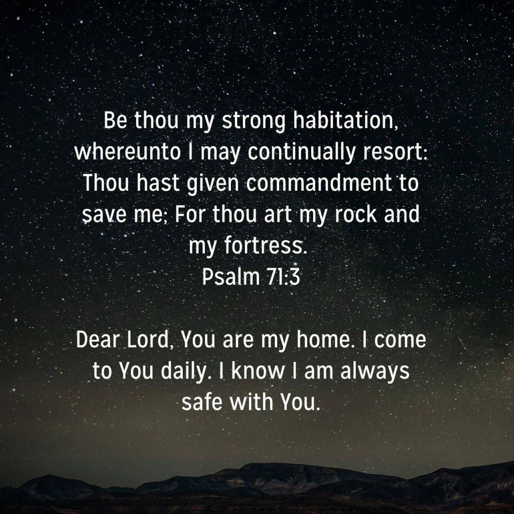 [3] Be thou my strong habitation, whereunto I may continually resort: Thou hast given commandment to save me; For thou art my rock and my fortress.
