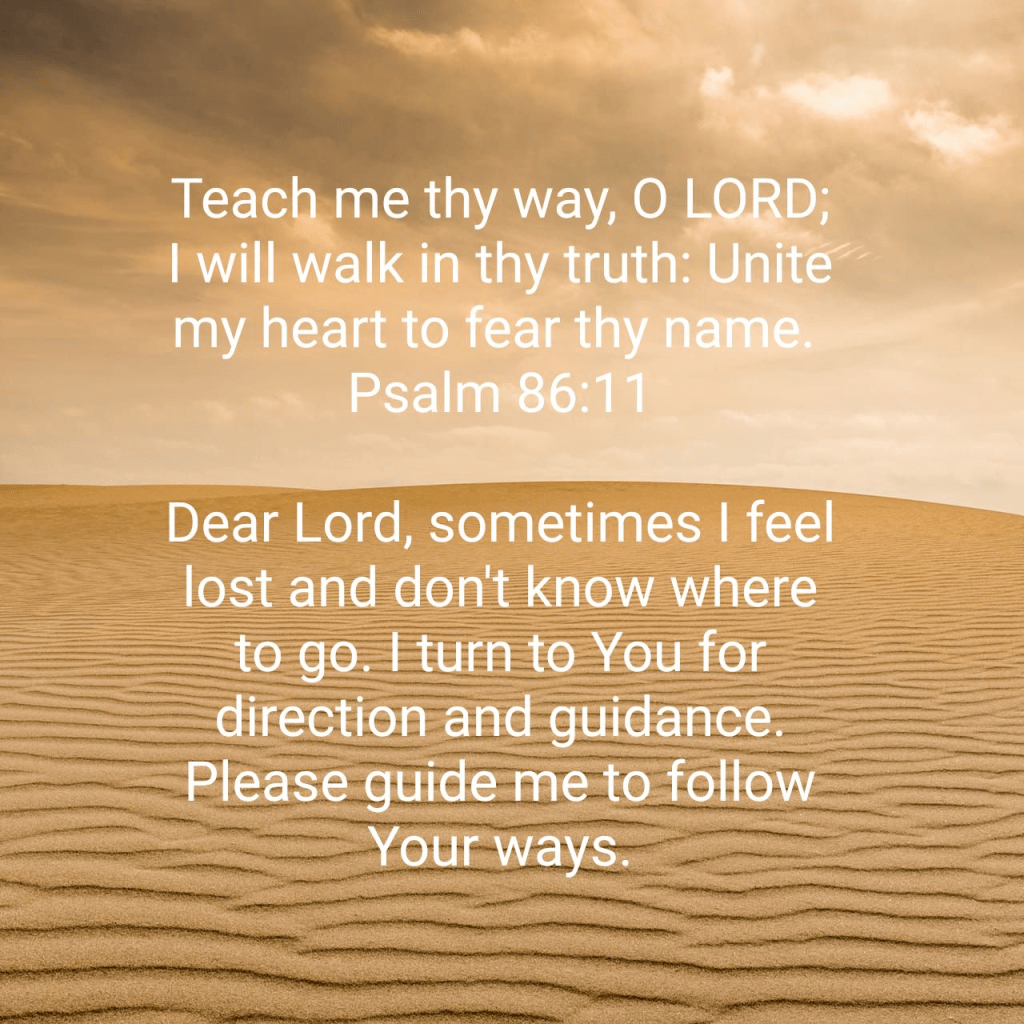 Teach me thy way, O LORD; I will walk in thy truth: Unite my heart to fear thy name. Psalm 86:11 KJV https://bible.com/bible/1/psa.86.11.KJV