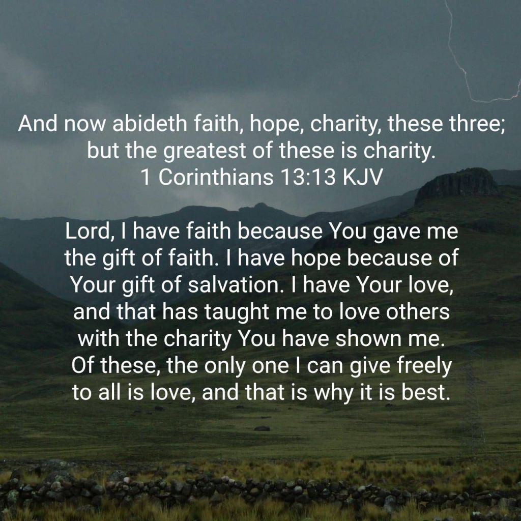 [13] And now abideth faith, hope, charity, these three; but the greatest of these is charity.