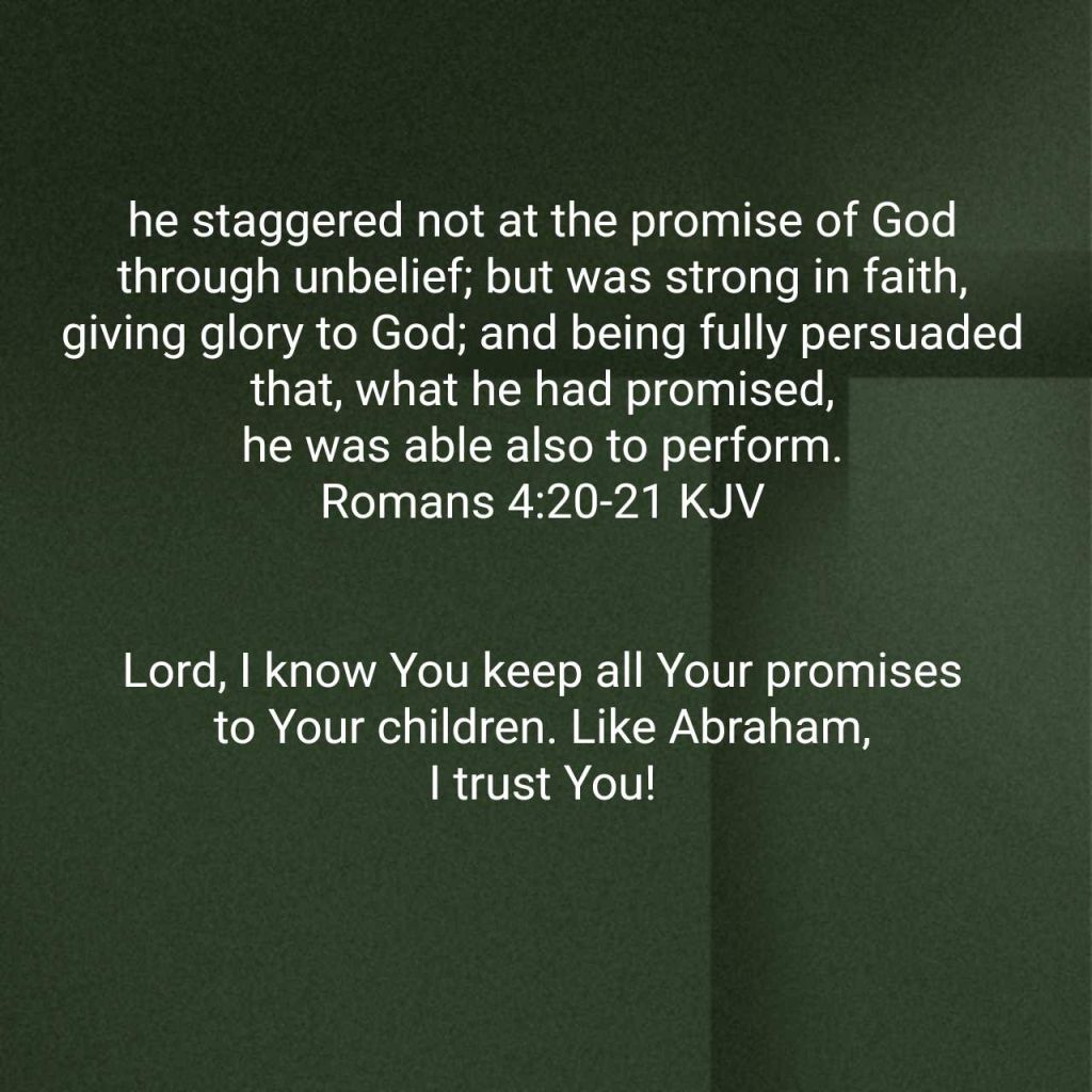 [20] he staggered not at the promise of God through unbelief; but was strong in faith, giving glory to God; [21] and being fully persuaded that, what he had promised, he was able also to perform.